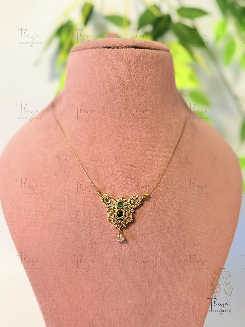 Meenakshi Sutra - Emerald Kundan Invisible Pendant